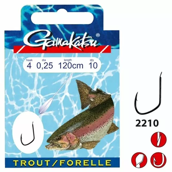 De Trout 2210 S onderlijnen van Gamakatsu zijn speciaal voor het vissen op forel gemaakt. Verkrijgbaar in haakmaten van 6 en 8 in een lengte van 60 cm.