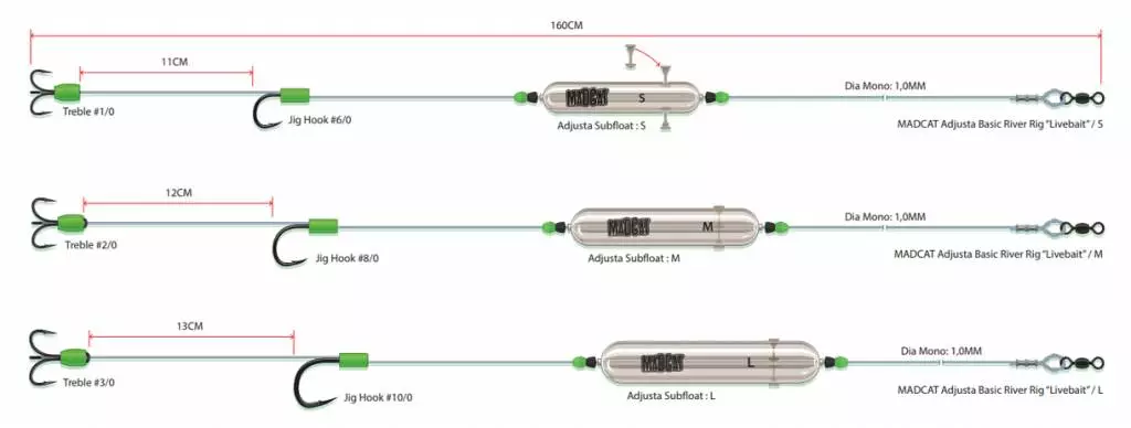 De Mad Cat Adjusta Basic River Rig – Livebait is een handige kant-en-klare onderlijn die speciaal is ontworpen voor het bodemvissen op snel stromende rivieren met een aasvis van 15 tot 17 cm. Deze Mad Cat Adjusta Basic River Rig – Livebait onderlijn is geknoopt van 1 mm dik Mad Cat Ultra Soft Mono en verder voorzien van hoogwaardige Mad Cat materialen.